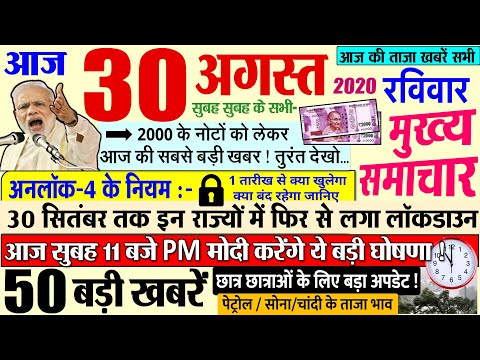 Today Breaking News India Aaj tak Hindi DLS abp !आज 30 अगस्त2020 के मुख्य समाचार बड़ी खबरें PM Modi news,चुनाव 2020, sbi new rules imps, petrol price in India.