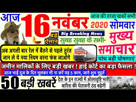 Today Breaking News India Aaj tak Hindi DLS abp !आज 16 नवंबर 2020 के मुख्य समाचार बड़ी खबरें PM Modi news,चुनाव 2020, sbi new rules imps, petrol price in India.